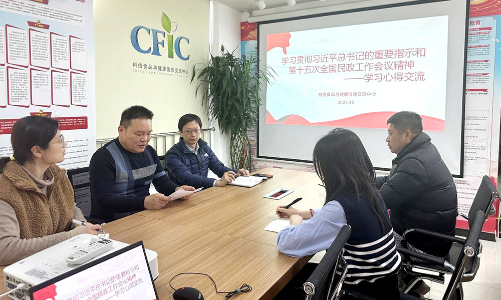 为深入学习践行习近平总书记对民政工作重要指示和第十五次全国民政会议精神,根据部管社会组织综合党委要求,科信食品与健康信息交流中心党支部于 2024 年 12 月 4 日组织召开了“学习贯彻习近平总书记关于民政工作重要指示和第十五次全国民政工作会议精神——学习心得交流”主题党日活动。会议由党支部书记包大跃同志主持。