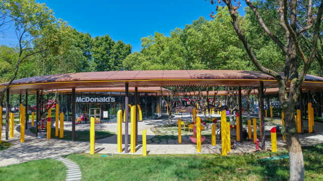 麦当劳华东地区首家绿色童趣旗舰餐厅——千岛湖秀水广场餐厅在杭州千岛湖风景区正式亮相,餐厅以“童趣 + 绿色”为核心理念...
