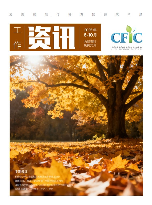 本期关注:科信中心举办食品相关政策法规专题线上培训,聚焦前沿,“食品与健康传播”专题沙龙在京召开,破除谣言树信心科信中心召开乳制品科普白宝书项目交流会,《燕麦与健康的科学...