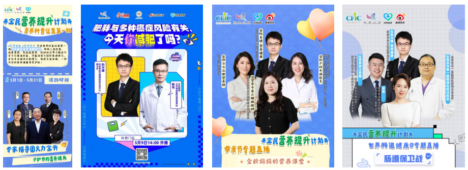 5 月,科信中心联合科普中国和微博健康开展线上营养科普活动,旨在通过以科学界为主导,通过全社会、多渠道、集中力量、传播核心营养知识,提高公众健康素养。活动为期一个月,覆盖四大主题(三高饮食,减重管理,乳制品营养,饮料知识),全站话题阅读量超 1 亿次。此外,结合行业日共开展了 3期线上直播,2 期图文科普。